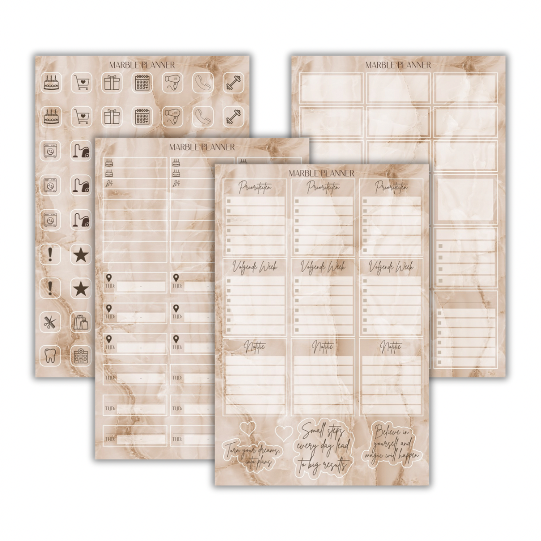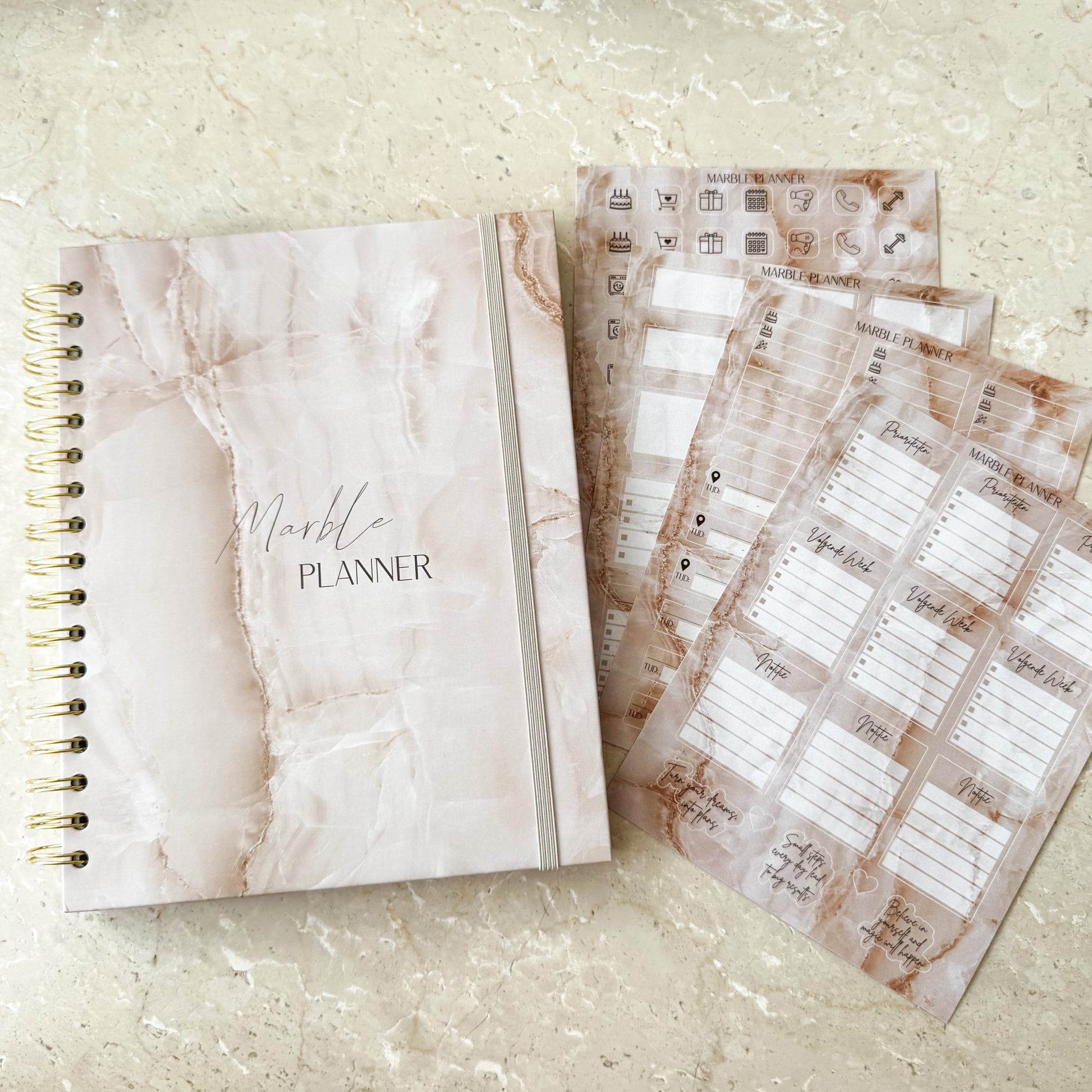 Breng structuur en overzicht in je dagen met de exclusieve Marble Planner Bundel! Deze set bevat de elegante Marble Planner en een set functionele plannerstickers, samen voor een voordelige prijs.