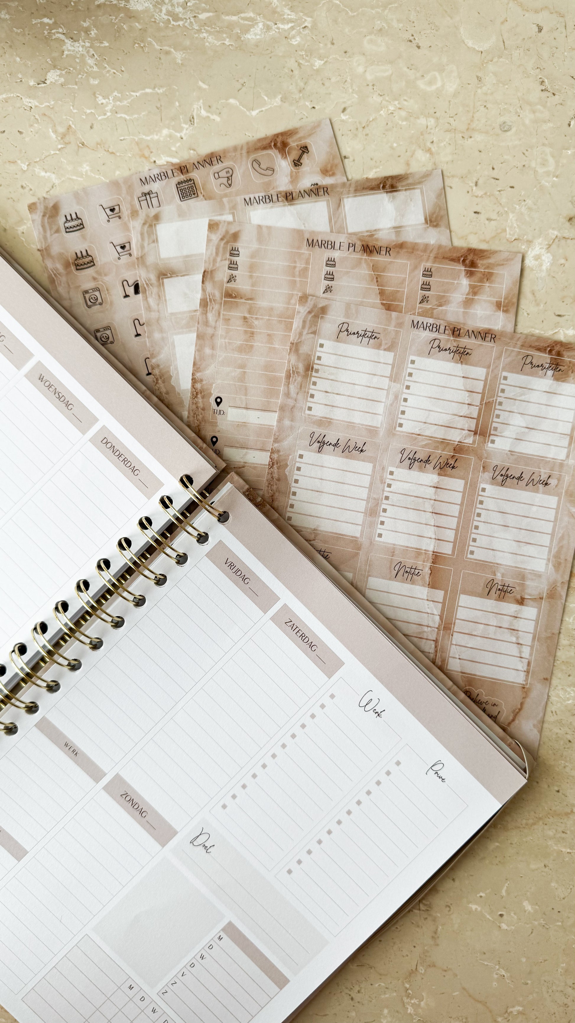 - De stickers zijn op maat gemaakt voor de Marble Planner. Overigens kun je de stickers natuurlijk ook gebruiken in andere planners.